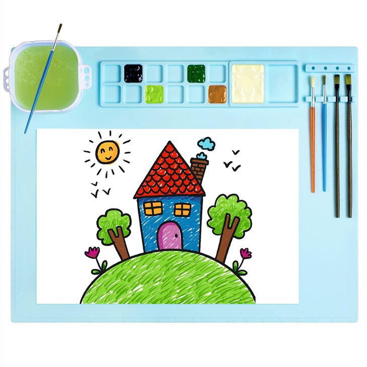 3. Ova ažurirana silikonska umjetnička prostirka ima dvije velike okrugle posude za boje za efikasno miješanje, sklopivu čašu za čišćenje četke i mogućnost korištenja kao palete boja i paleta. Ova silikonska prostirka za kreatore ima skale s lijeve i donje strane koje su praktičnije za vašu umjetničku produkciju.